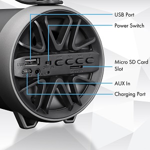 | Key Features | Wireless BT Supports USB/ Micro SD card Built-in FM Radio AUX Input Media / volume control Built-in Rechargeable battery |