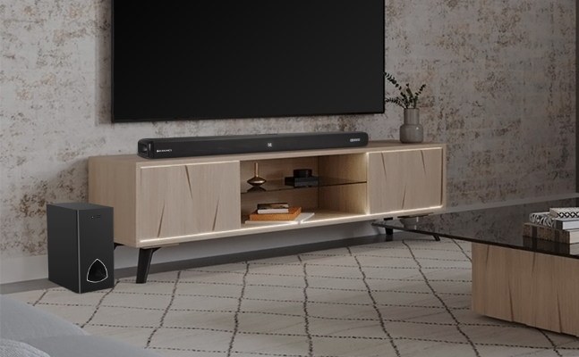 ZEB-Juke Bar 9001 Pro comes with wall mountable sound bar for optimum positioning for the listener. Its multi driver setup ensures that sound flows all around the listener. The sound bar can be placed on a flat surface too.