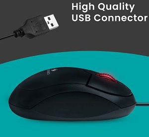 The mouse has a USB interface with 3 buttons left button, right button along with a scroll wheel. The mouse is a high precision one with 1200 DPI.