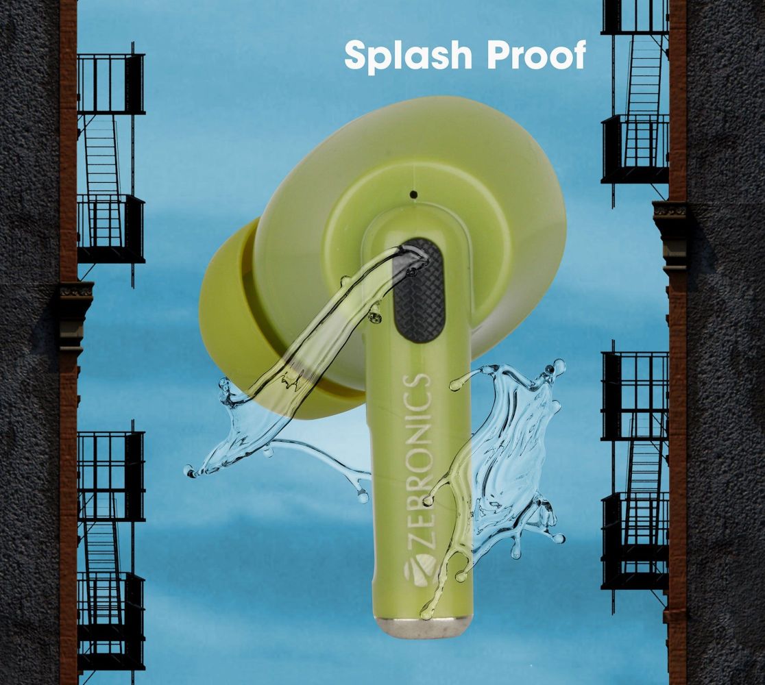 The wireless earbuds come in a splashproof design, so you needn't worry about spills or splashes.