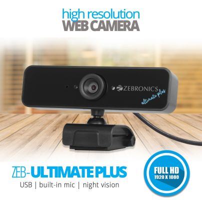 Zeb-Ultimate Plus is a USB powered high-resolution web camera with a 5P lens and Full HD 1920x1080. The web camera comes with a built-in mic, has night vision, and comes with a control pod for brightness control along with white auto balance. It has an easy mounting clip-on design and comes with a 1.5M long and strong cable.