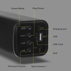 The speaker has multi-connectivity options like BT where one can stream any audio content wirelessly. The speaker also supports USB & Micro SD card, AUX and call function button.