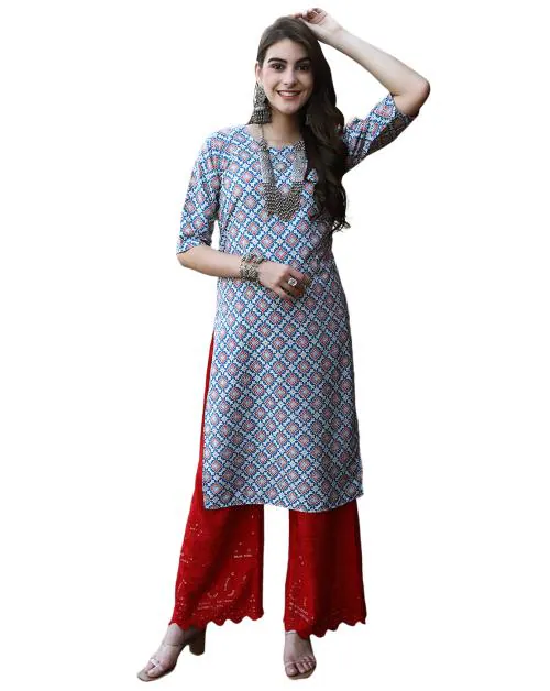 1 Stop Fashion Women's Multicolor Printed Crepe Straight Kurta