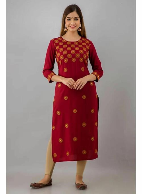 2083 Maroon Embroidered Rayon Straight Kurta-XL