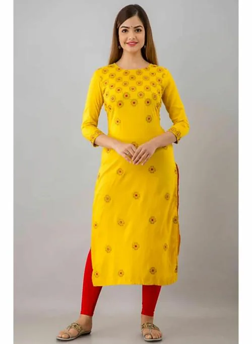 2083 Mustard Embroidered Rayon Straight Kurta-XXL