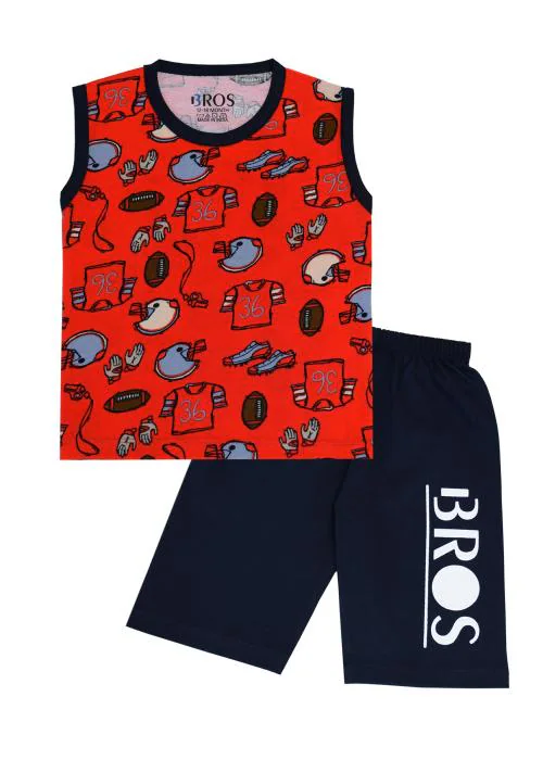 3BROS Boys Cotton Sleeveless Tshirt and shorts (18-24 Month,Red)