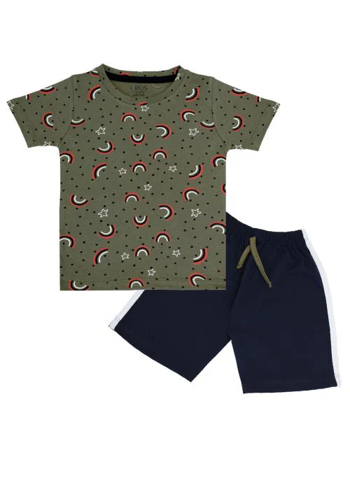 3BROS Unisex Cotton Blend Regular Fit Summer Half Sleeve Tshirt & Shorts Clothing Set for Boys (2-3 Years,Green)