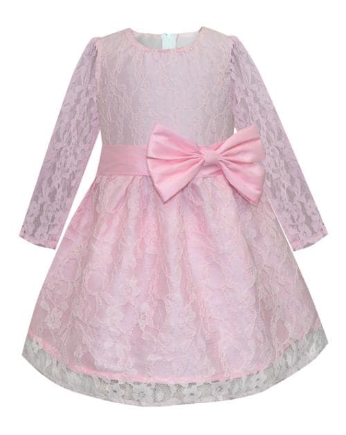 A.T.U.N. Girls Baby Pink Full Sleeve Lace Dress
