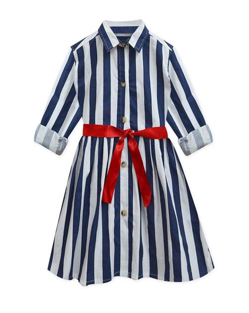 A.T.U.N. Girls Navy White Stripe Full Sleeves Shirt Dress