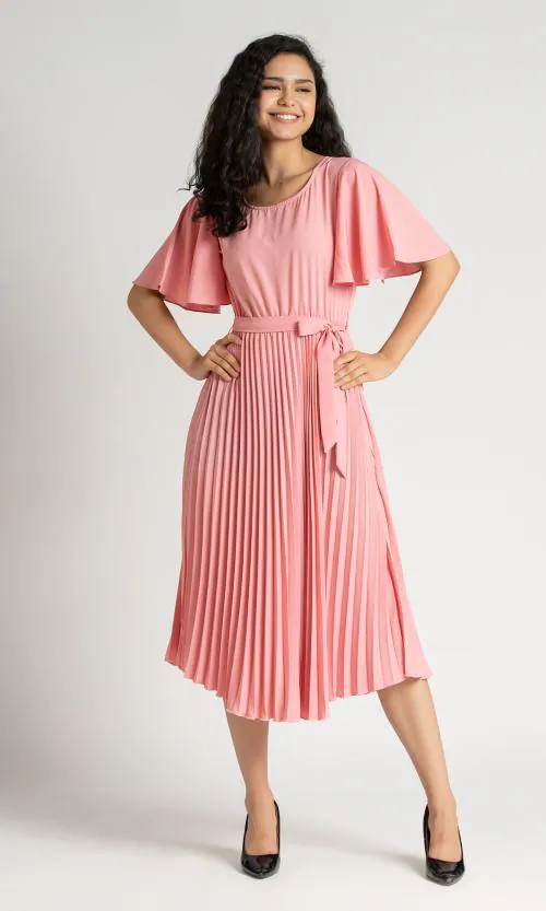 AASK Pink Womens Polyester Pleated Dress| Dress for women| Party Dress| Dresses| Stylish Dress| | New Collection