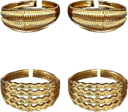 Abdesigns Gold Plated Brass Free Size Toe Ring Set Suitable Women - Pack of 4