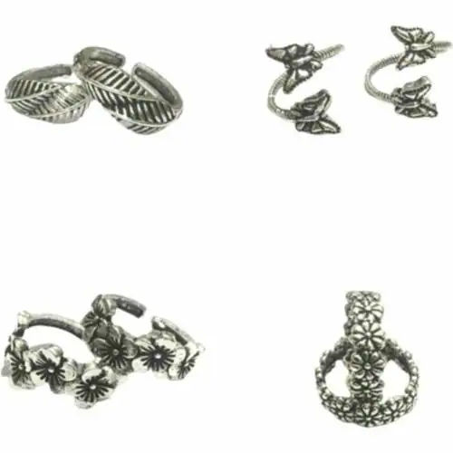 Abdesigns Silver Plated Brass Adjustable Toe Ring Set Suitable Women - Pack of 8