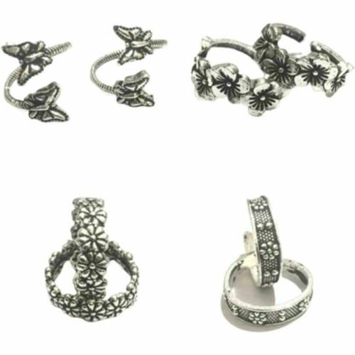 Abdesigns Silver Plated Brass Adjustable Toe Ring Set Suitable Women - Pack of 8