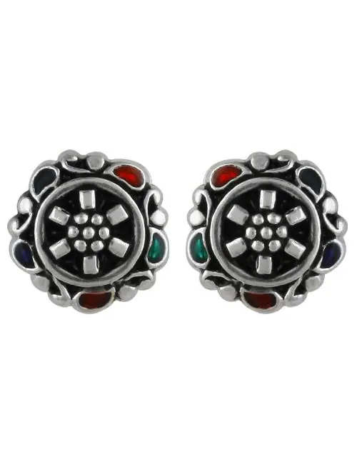 Abhooshan Tribal Enamel/Meena Work light weighted Stud Earrings in 92.5 Silver