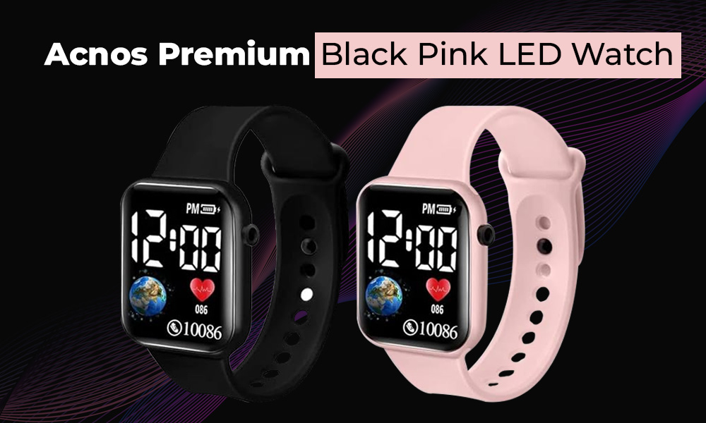 Acnos Premium Black white Color Luminous LED Display Fashionable Digital Waterproof Sports Square Led Watch Men and Boys (pack of 2)