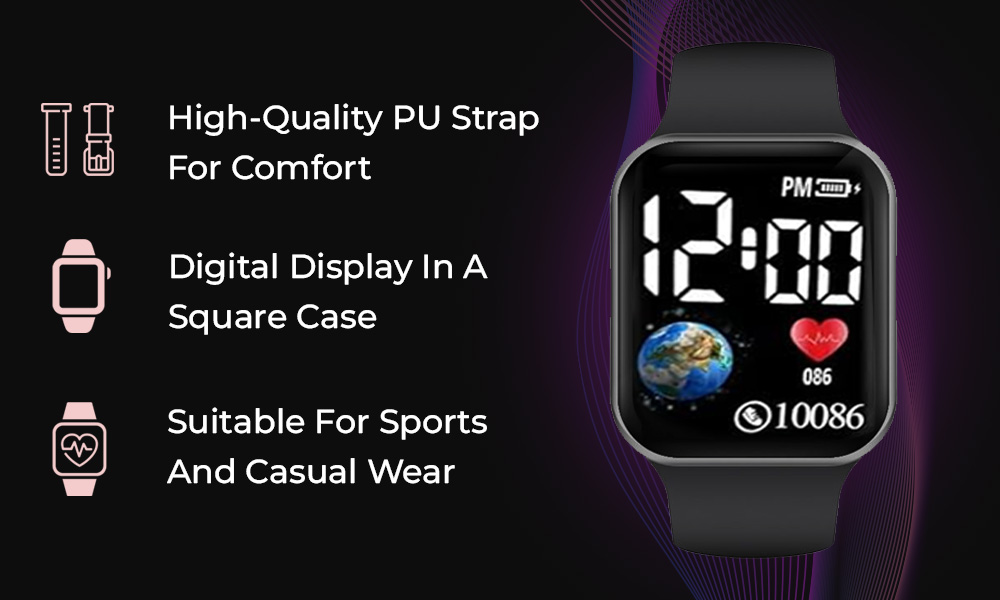 - Dial Color : Black men watch | Strap Color : Black watches for men latest stylish| Display Type : Digital | Case Shape : Square boys watch | chronograph watches for men