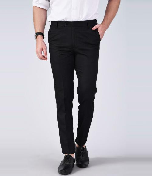 AD & AV Men Black Solid Synthetic Single Formal Trousers