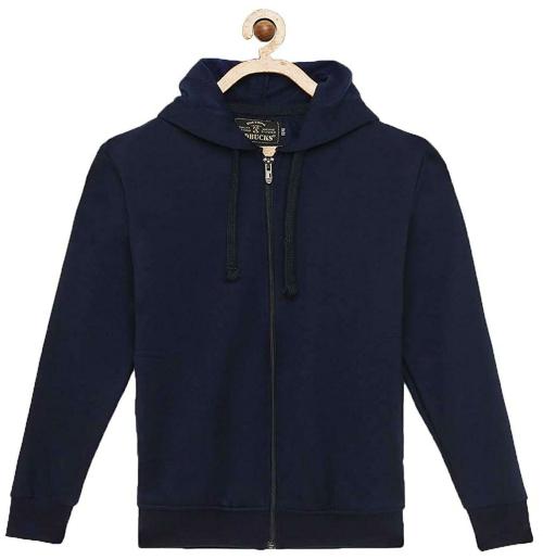 ADBUCKS Boys Blue Solid Cotton Hoodie