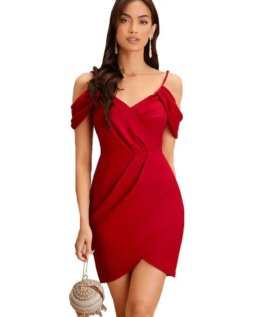 ADDYVERO Fold Pleated Cold Shoulder Bodycon Dress
