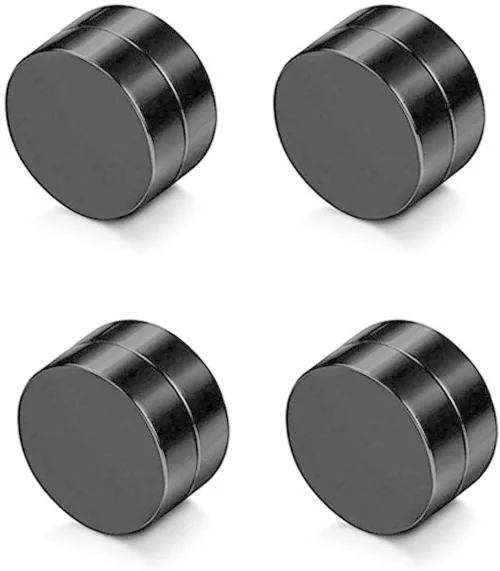 Adhvik Round Shaped Magnetic Earring, Stud Earring Black (Men, Women) Pack of 2