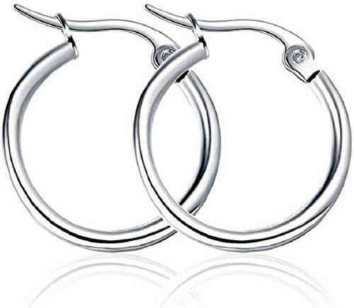 Adhvik Silver Press Screw Pierced Metal Barbell Ninja Hoop Bali Hoop Earring Silver (Unisex)