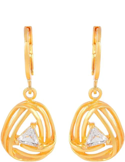 ADMIER 1 micron gold plated triangle design cz studded fashion designer dangle hoop earrings for girl women.