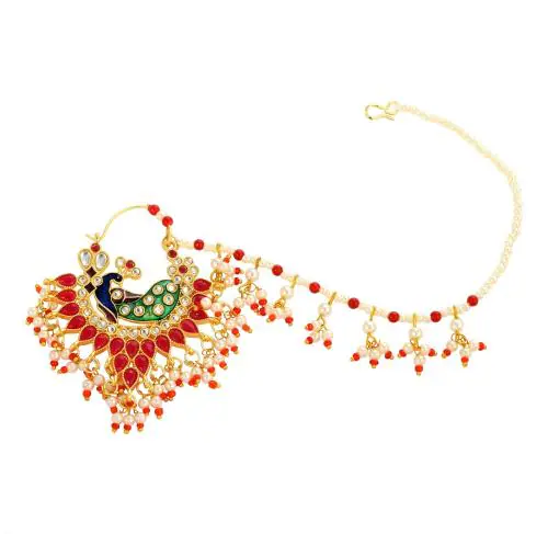 ADMIER gold plated brass cz studded peacock design Traditional Rajasthani Rajputi style Nose Ring Nathiya/Nath for Girls and Women