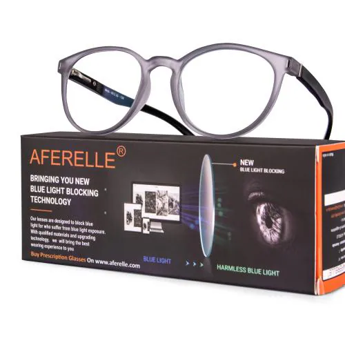 AFERELLE Anti Glare and Blue Cut Oval Full Rim Computer Glass for Men | Women Zero Power | Matt Grey | Black