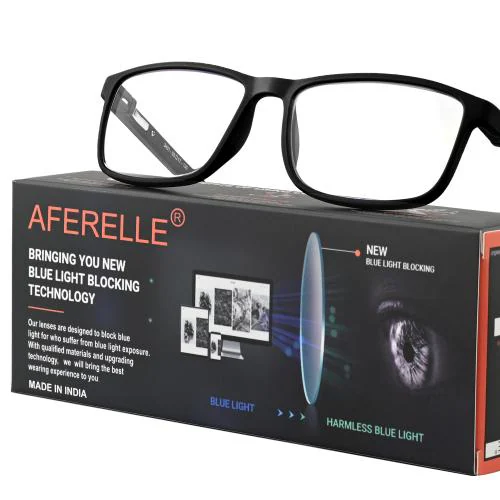 AFERELLE Anti Glare and Blue Cut Rectangular Full Rim Computer Glass for Men, Women | Matt Black