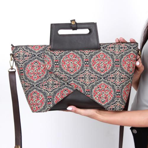 This stylish afsoon womens laptop messenger bag/ handbag bag/laptop briefcase is a compact bag laptop and all essentials of office going women in one place. The bag is jaipuri print cotton fabric and pu leather and lined with soft feel durable cotton. A versatile handbag that features with one roomy compartment having a soft padded laptop sleeve to store your laptop safely. Comes with organizer pockets for small accessories like power bank, hard disk, keys etc. An inner zip pocket for coins, wallet etc. Front zip pocket can store mobile or items that are easily accessible.