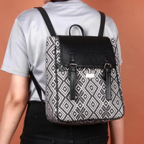 Afsoon White Pu Leather, Cotton Printed 3.5L Backpack For Women