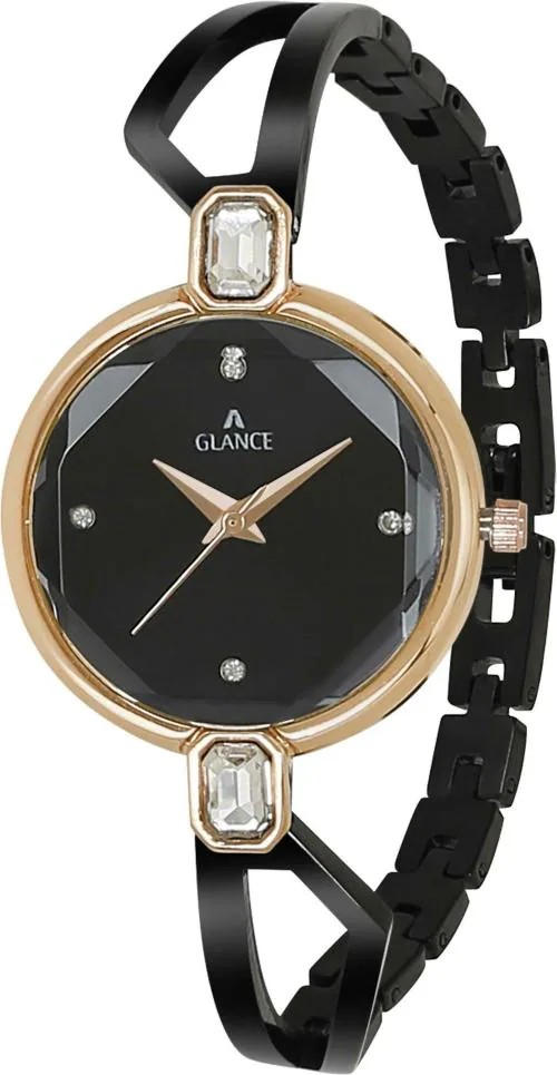 Aglance Analog Black Dial Black Strap Watch for Women & Girls
