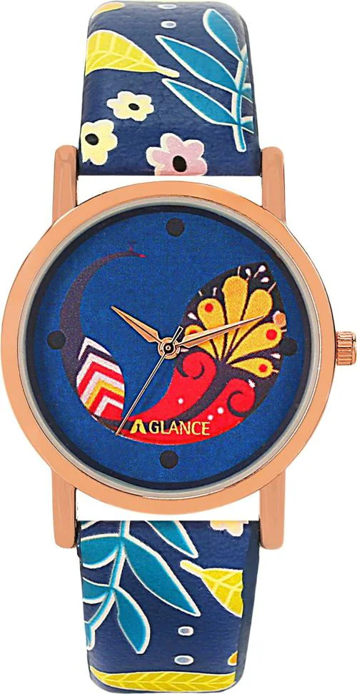 Aglance Analog Bronze Dial Blue Strap Watch for Women & Girls (7014)