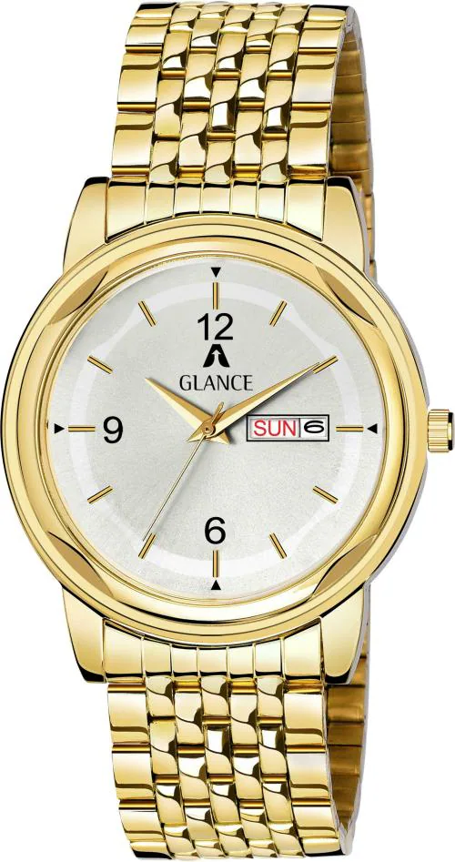Aglance Analog Silver Dial Gold Strap Watch For Men