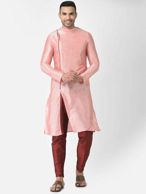 AHBABI Self Designed Silk Blend Plain Kurta Set for Men, Full Sleeves, Round Neck, Ethnic For Any Occasion Pink