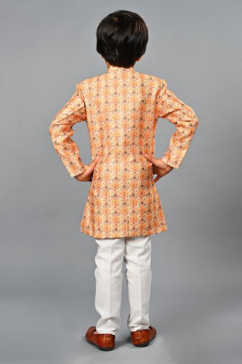 Ahhaaaa Kids Ethnic Silk Blend Indo-Western Sherwani Set For Boys