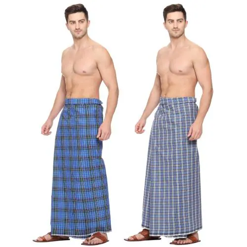 AHMADUN Small Check Comfortable Lungi in 2 Meters Blue Gray Color 2 Meters Unstitched Pack of 2