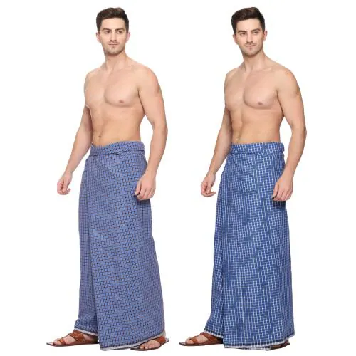 AHMADUN Small Check Comfortable Lungi in 2 Meters Blue White Color 2 Meters Unstitched 2 Pcs