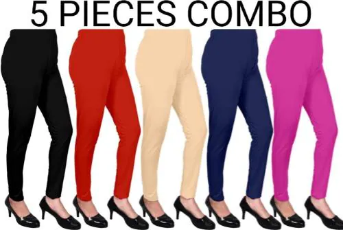 AILANIS Women Multicolor Solid Polycotton Leggings - XL ( pack of 5)