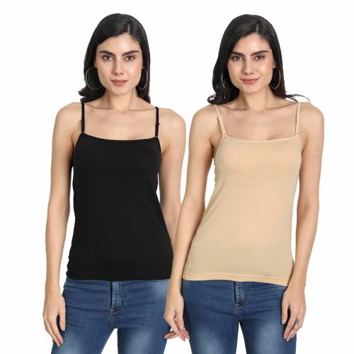 Aimly Women's Cotton Camisole Slip Black Beige XL 1012 Pack of 2