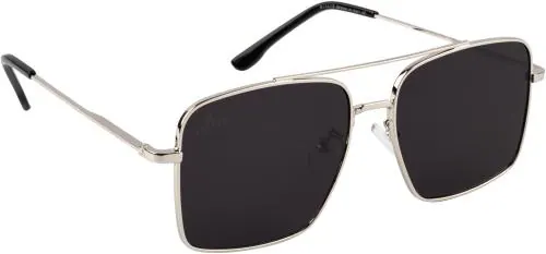 AISLIN UV Protected Unisex Wayfarer/Rectangular Sunglasses - (Black Lens | Silver Frame | Medium Size)