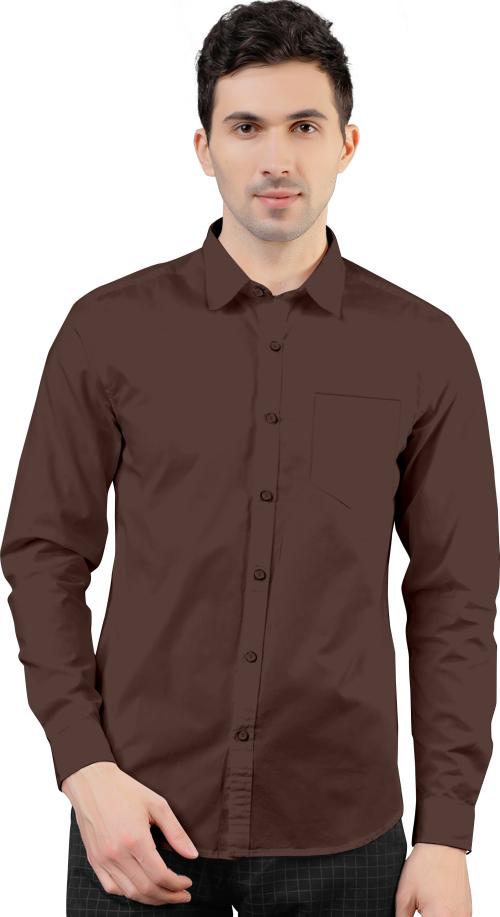 AJ Brothers Men Brown Solid Poly Silk Spread Collar Casual Shirt - M