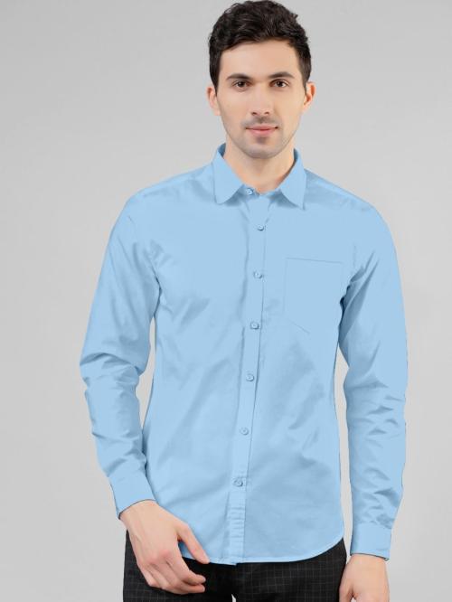 AJ Brothers Men Light Blue Solid Poly Silk Curved Collar Casual Shirt - XXL