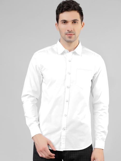 AJ Brothers Men White Solid Poly Silk Spread Collar Casual Shirt - L