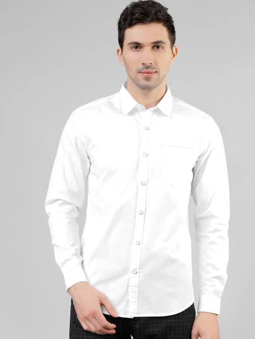 AJ Brothers Men White Solid Poly Silk Spread Collar Casual Shirt - XL