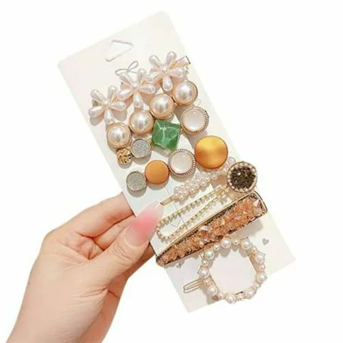 AkashKrishna Korean Hair Clip Clamps Pearl Metal Clips Combo for girls Pack of 8