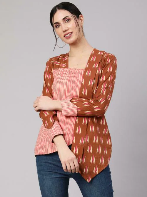 Aks Brown Ikat Print Layered Top