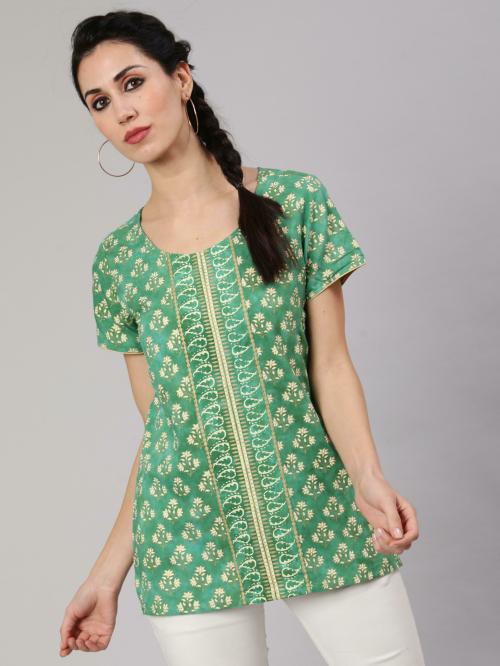 Aks Green Tie-Dye Floral Print Top
