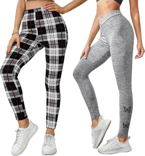 Alisba Women Multicolor Checkered Lycra Blend Pack Of 2 Jegging (L)