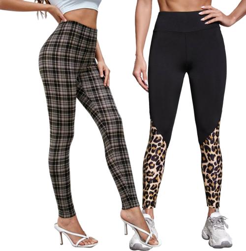 Alisba Women Multicolor Checkered Lycra Blend Pack Of 2 Jegging (L)